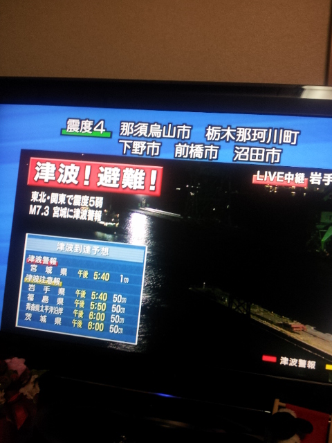 あの地震以来、久々の5以上、そして1分以上の揺れ。