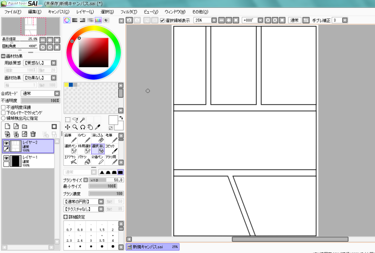 ねぎはこの状態のキャンパスを、『web漫画用原稿』なんて名づけて.sai形式で保存しときまっす。